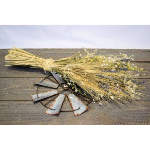 A charming blend of golden wheat, dark lavender stems, brilliant white and yellow starflower, and lineum (flax), this bouquet brings up all the best emotions of the fun days of summer. Beautifully and naturally dried, this bunch of grains and flowers is a long-lasting addition to your home décor. This bouquet would also make a perfect wedding centerpiece or bride’s bouquet for a country-themed wedding. Farmhouse style is trending, and this bouquet brings out the best of it! Add it to your living room décor, kitchen window sill, entry table, reading nook, or bedroom. Great for weddings, centerpieces, events, fireplaces, or decorate any room with something fun in the corner. You will love the look it gives your area. We guarantee it.